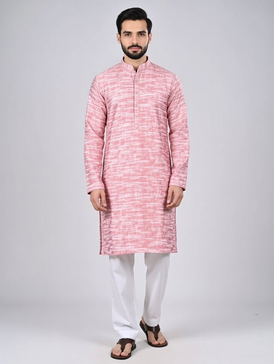 Coral Textured Cotton Panjabi – Premium Festive Edition -