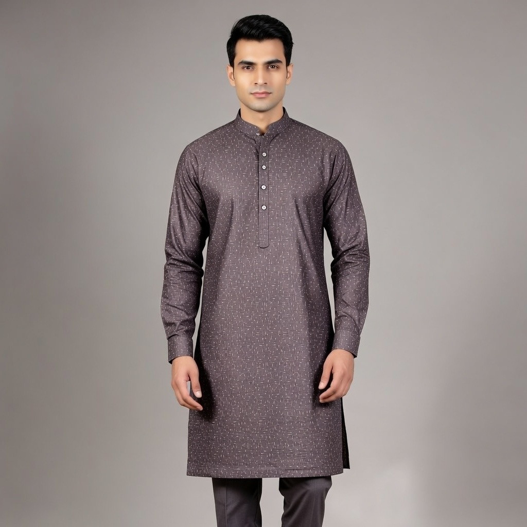 Royal Mocha Textured Panjabi – Premium Cotton Collection -